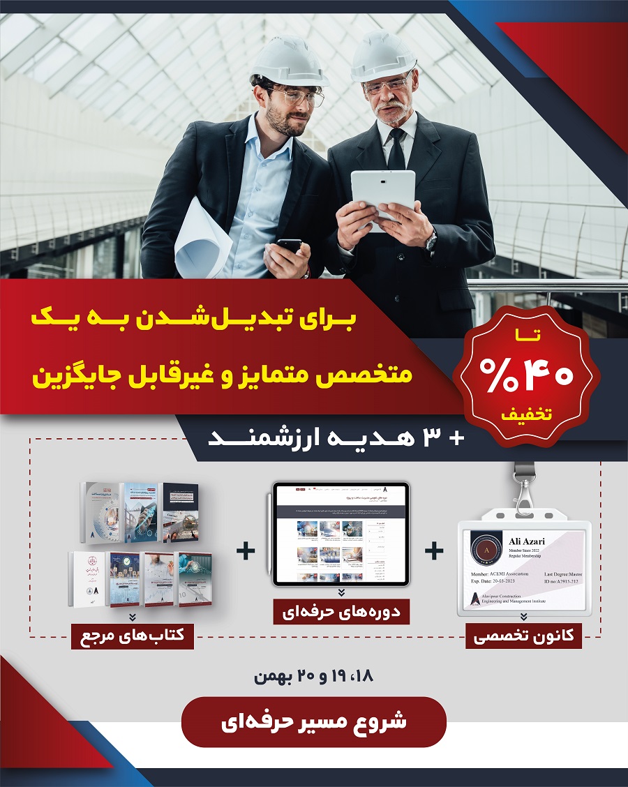 دسترسی به جدیدترین مقالات تخصصی و اخبار بهروز صنعت ساخت در حوزههای دانشی مدیریت دفتر فنی، مدیریت پروژه، مدیریت ساخت، مدیریت مالی و هزینه، مدیریت برنامهریزی و زمانبندی، مدیریت قرارداد، مدیریت ایمنی، مدیریت طرح و برنامه، مدیریت پایداری، مدیریت ریسک، مدیریت اطلاعات، مدلسازی اطلاعات ساخت (BIM)، مهارتهای نرم و مدیریت کسبوکار