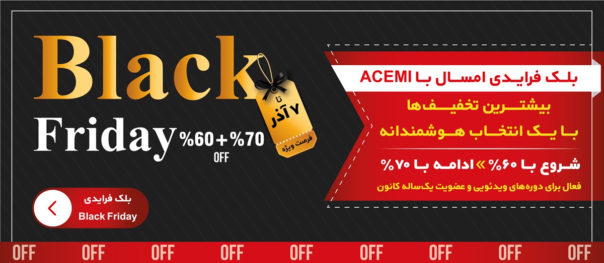 بلک فرایدی ما از 5 آذر شروع میشه و تا پایان روز جمعه ساعت 23 ادامه داره. از فرصت باقی مانده استفاده کنید و دورههایی که مدنظر دارید رو از همین الان انتخاب کنید. اگر هم سوالی در مورد هر دوره دارید، از پشتیبانی آنلاین سایت یا سایر راههای ارتباطی با مشاوران ما در ارتباط باشید.