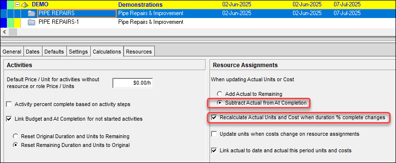 1. گزینه «Calculate Costs from Units» در Primavera P6 چه تاثیری در محاسبه منابع و هزینه واقعی پروژه دارد؟