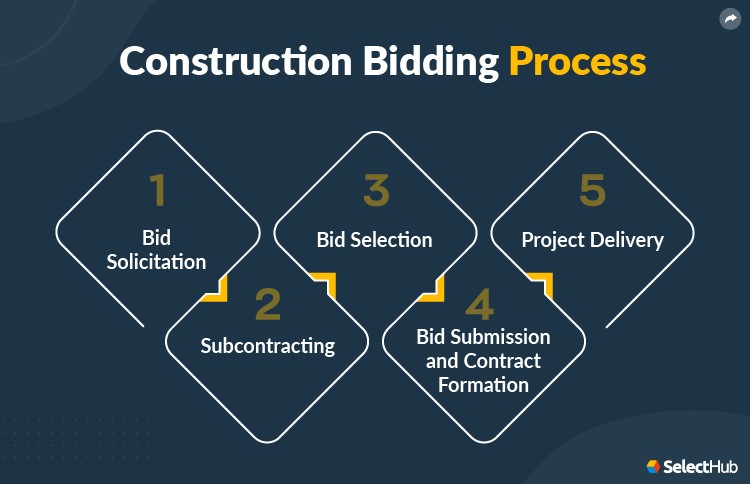 فرایند مناقصه صنعت ساخت شامل پنج مرحله کلیدی است که هر کدام نقش مهمی در موفقیت ارائه پیشنهاد دارند: