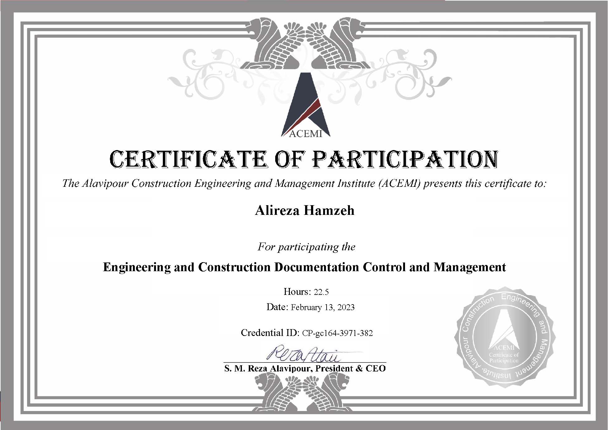 - ارائه گواهینامه معتبر با امضای مدرس رسمی و تأییدشده انجمن مدیریت ساخت آمریکا (CMAA) در ایران
