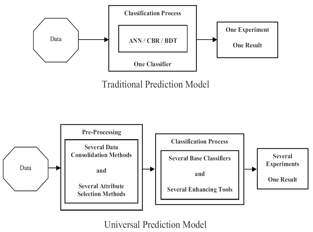 شکل 5. مقایسه مدل پیشبینی سنتی (Traditional Prediction Model) و مدل پیش بینی جهانی (Universal Prediction Model)