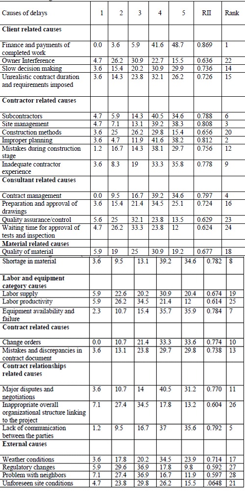 ت- مدیریت قرارداد: تأخیر به دلیل مشکلات قراردادی بین کارفرما و پیمانکار رخ میدهد. سایر مطالعات نیز به این نتیجه رسیدهاند که مشکلات قراردادی یکی از مشکلات جدی در پروژههای صنعت ساخت است.