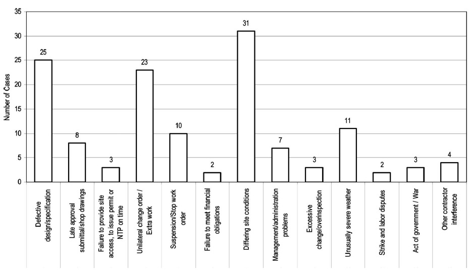 در مطالعهای که توسط آقای Arditi و همکاران در سال 2008 انجام شده است ([1]) به شناسایی دلایل رایج برای وقوع ادعاهای مبتنی بر زمان پرداخته شده است. این مطالعه، دادههای به دستآمده از 58 پرونده در زمینه ادعاهای مبتنی بر زمان را تجزیهوتحلیل کرده و سعی کرده مواردی که برای متخصصان آنالیز تاخیرات مهم است را مورد موشکافی قرار دهد. این مطالعه نشان میدهد که شایعترین مشکلاتی که باعث ایجاد اختلافات مبتنی بر زمان در پروژههای ساخت هستند، شامل موارد زیر میشوند: