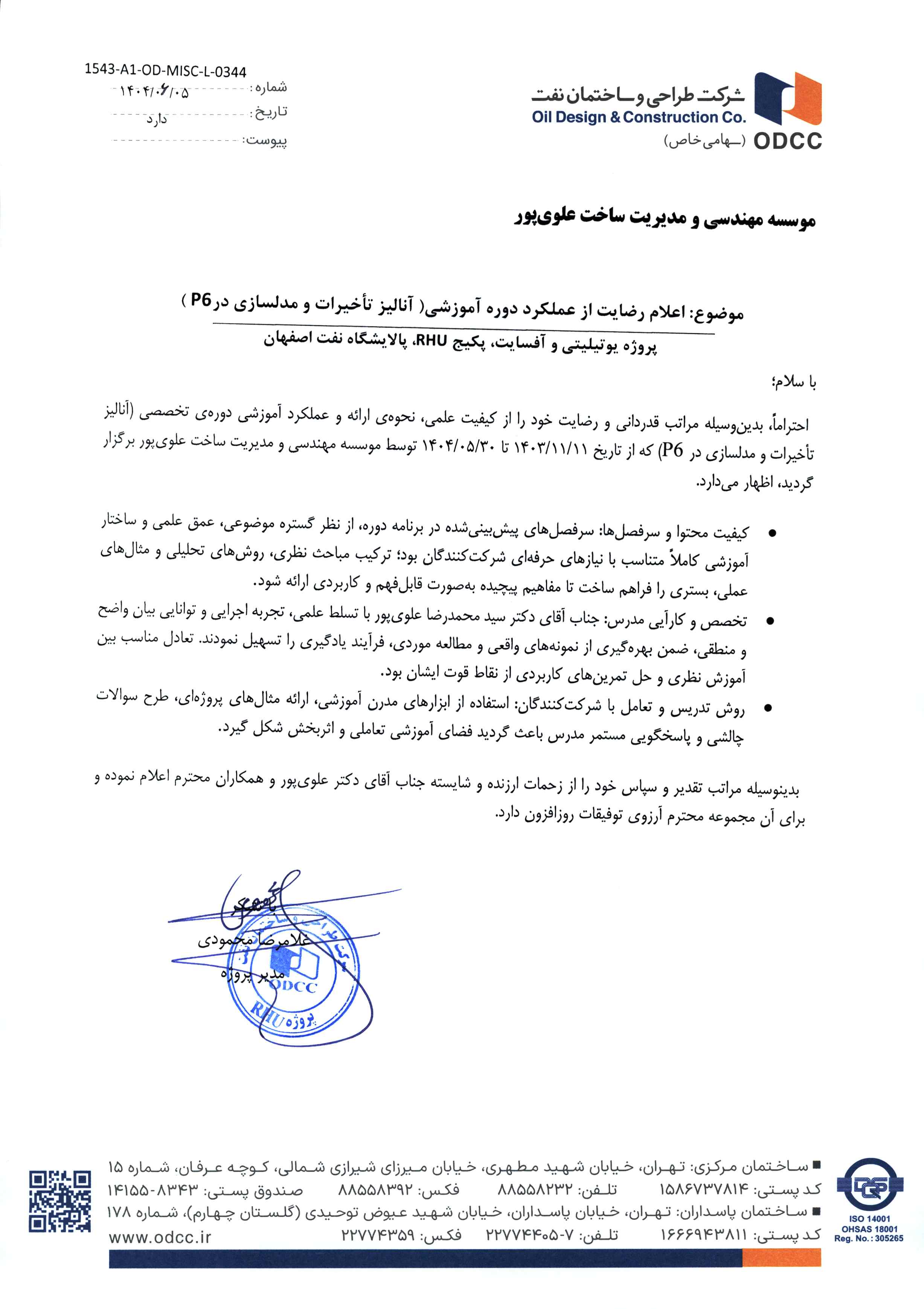 وقت بخیر برگزاری دوره های اینچنینی که کمک به درک بیشتر دورهای برگزار شده در گذشته (دوره جامع تحلیل تاخیرات و دوره کلیم) میکند بسیار ارزشمندمی باشد که امید است درآینده همچنان ادامه دار واز تنوع لازم برخوردارباشد.