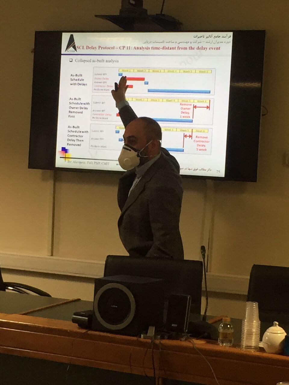 در این دوره 3 ساعته که برای مدیران ارشد شرکت مهندسی و ساخت تاسیسات دریائی ایران برگزار شد، به بررسی ساختار برنامه ریزی، قراردادی و حقوقی تاخیرات پرداخته و یک نقشه راه متفاوتی را ارائه نمودیم. برای جزئیات بیشتر میتوانید مبانی دوره آنالیز تاخیرات این دوره را مشاهده نمایید.